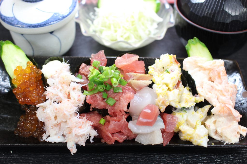 こぼれ軍艦セット 980円(税別) 内容 握り イクラ、カニ身、ネギマグロ 海鮮、ホッキサラダ、エビサラダ &... -