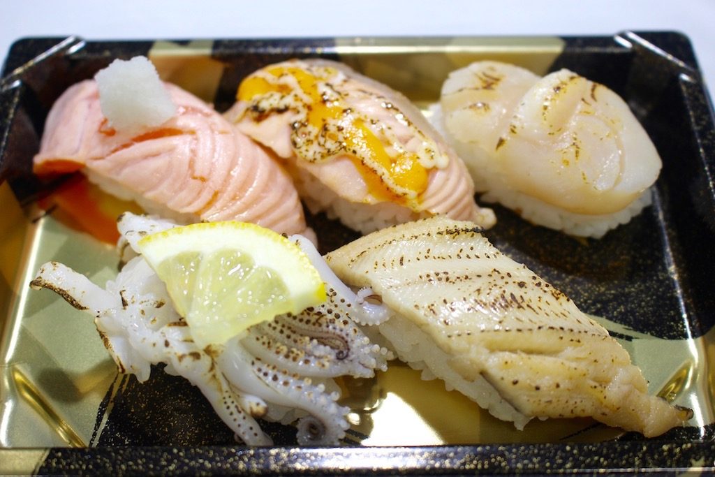 炙り5種530円(税別) 生サーモン、サーモンチーズ、回柱(ホタテ) イカゲソ、アナゴ、の炙り5種セットです🎵 サーモン5種 430円(税別) サーモンマヨ、生サーモン、炙り生サーモン 焼きハラス、サーモン中落ち 女性やお子様に人気の サーモンのセット...